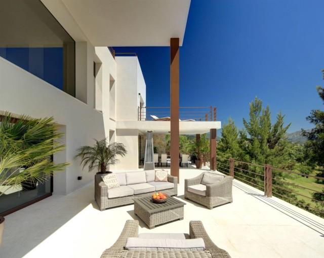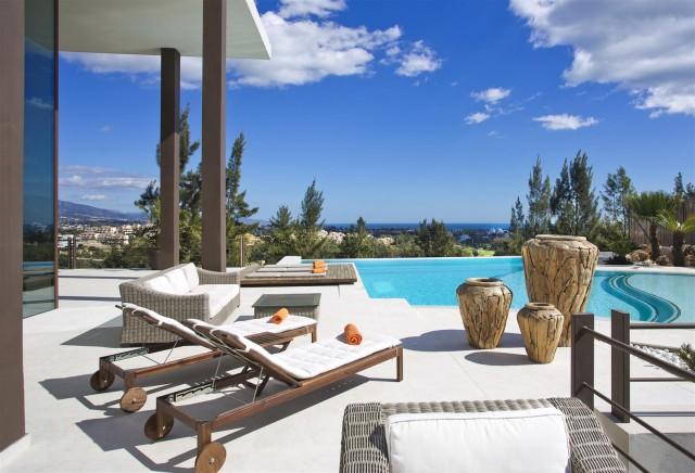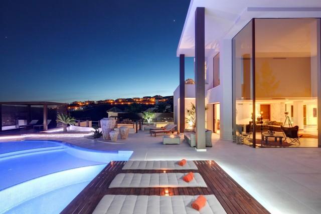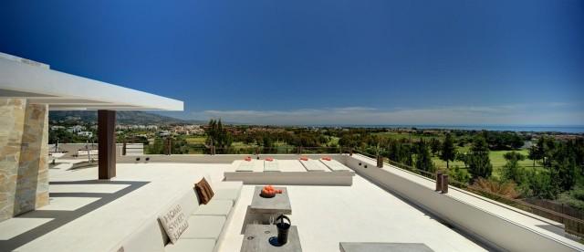 Modern style frontline golf villa Benahavis. Stunning south facing villa located in a quiet residential area offering 360º panoramic sea, golf and mountain views.