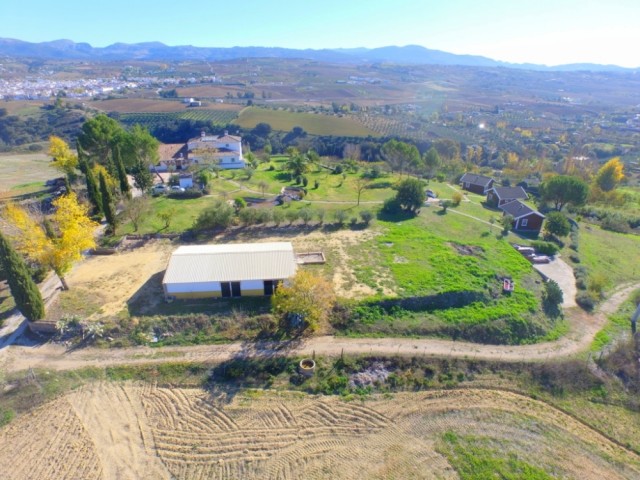 Andalusian Cortijo with wonderful panoramic views, 5.000 olives trees, excellent road access, 3 separate Bungalows and 10 stables, on an impressive flat and fully fenced plot of almost 200,000m2 with well water.