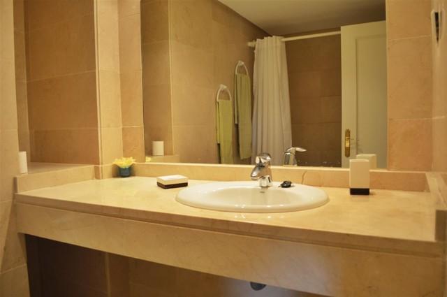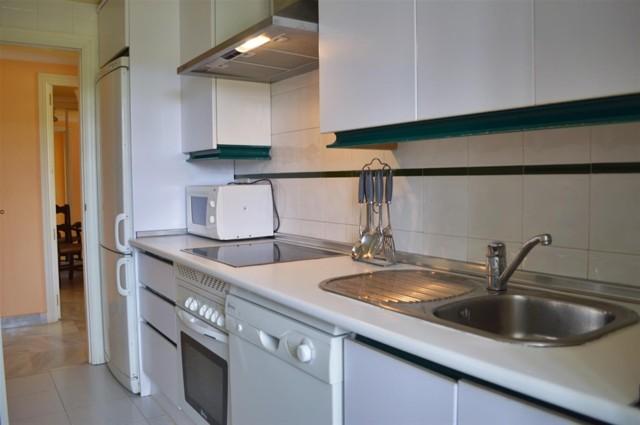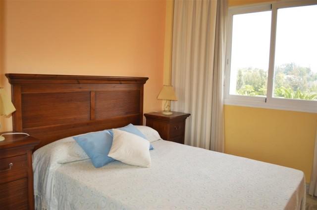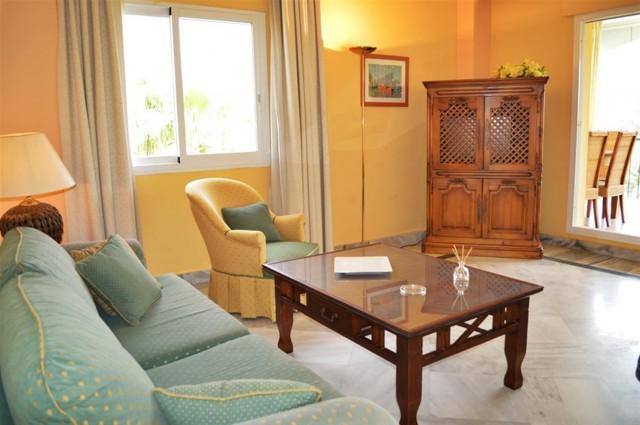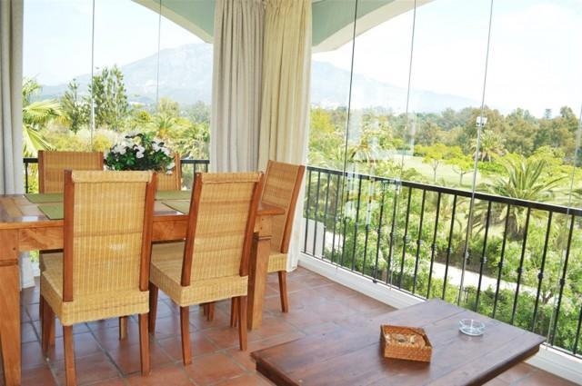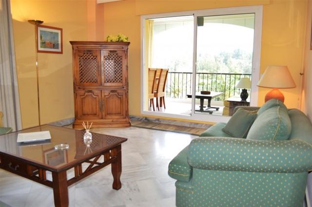 Beautiful frontline golf three bedroom apartment located in a gated community with 24 hour security, communal gardens, swimming pools and paddle courts. Located within 10 minutes walking distance to Puerto Banus and the beach, this apartment features a spacious enclosed terrace offering fantastic golf and mountain views, air conditioning hot/ cold, marble floors, fully fitted kitchen, double glazing, satellite T.V. and a garage space.