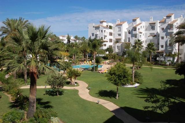 This fabulous south facing apartment is located in a prestigious beachside residential complex on the New Golden Mile, offering beautiful communal gardens, swimming pools and tennis courts, as well as being within walking distance to the beach, promenade and to several beach bars and other amenities The main features include air conditioning hot/ cold, marble floors, fully fitted kitchen, laundry room, satellite T.V., lifts, garage and storage.
