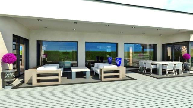 Modern Style Villa. Beautiful spacious villa that can be located anywhere on the coast. This new development has a stunning living and dining area with access to the terrace, garden and pool, fully fitted island kitchen with breakfast area, and the choice if 3 or 4 large suites.