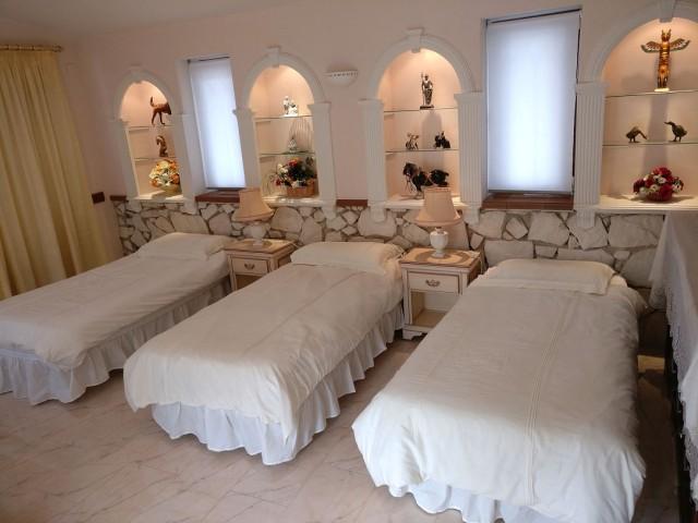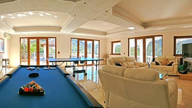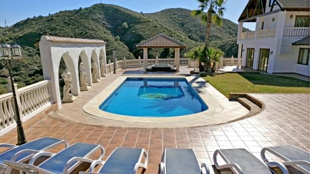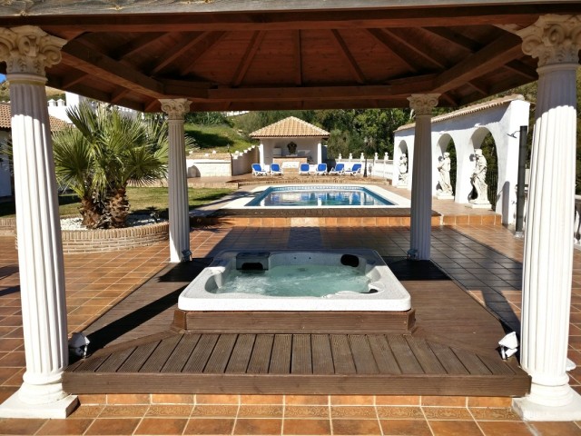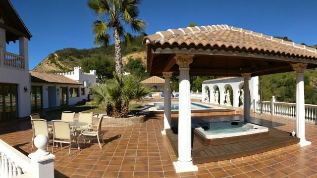 Villa for sale in Mijas Costa consisting of a living room with fireplace, a dining room, 5 bedrooms, 5 bathrooms, a fully fitted kitchen and several terraces. Separate two bedroom apartment. Heated pool. Jacuzzi. Garage. Stables. Plot: 62.000m2. Currently running as wedding venue and holiday rentals.