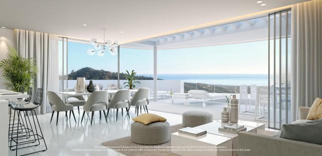 This apartment is large with total constructed area of 15,94 m2, of this 110,31 m2 interior space and 44,63 m2 of terrace. The property will comprise a spacious, light open plan living room / dining area with a beautiful kitchen including top end domestic appliances, leading out onto the south facing terrace with spectacular views of the sea and Marbella, 2 bedrooms with fitted wardrobes and 2 bathrooms. The property includes 1 parking space and a storage room.