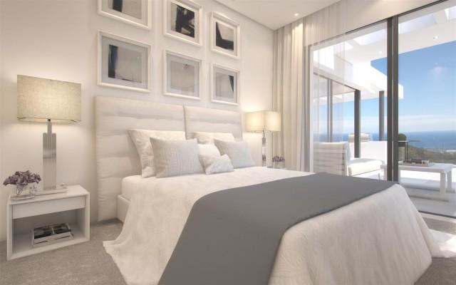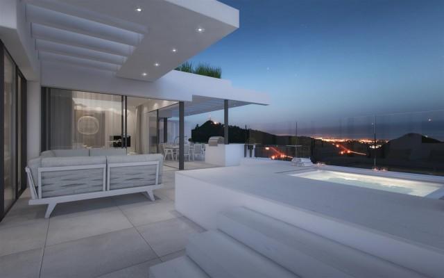 Contemporary penthouse for sale close to Marbella, currently due to start construction. Apartments, penthouses and villas in a brand new low density development nestling in the hills just behind Marbella. The area is tranquil and surrounded by green belt and mountains with south facing impressive panoramic views down towards Marbella and the sea. The apartment comprises: a spacious, light, open plan living room / dining area with a beautiful kitchen including high quality domestic appliances, leading out onto the south facing terrace with spectacular views of the sea and Marbella, 3 bedrooms with fitted wardrobes and 2 bathrooms. The property includes 1 parking space and a storage room and the community offers a health club with spa, gym, fitness studio and indoor pool as well as a business centre with wifi. The complex will house 2 outdoor pools (including one heated) and 2 kids pools, strategically placed to enjoy the fantastic views. Other services include 24-hour security, concierge service and onsite rental management.