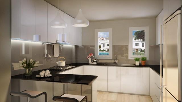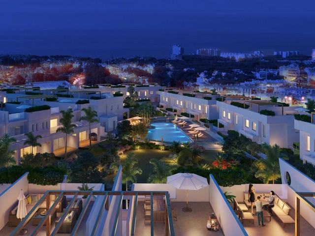 Small complex of only 48 hourses. Sea views located close to the beach and other essential amenities. This is a first class modern development in the heart of the Costa del Sol. With easy access to the highway, 10 minutes from Marbella and 30 minutes from Málaga Airport.The gated community has 24 hours security, an ample garden area with swimming pool to enjoy the 300 + days of sun, plus an underground gym next to the pool for use by the residents. Built using high quality materials, including reinforced doors, installation of telecommunication, TV and telephone in living room and bedrooms, first quality sanitary ware, taps and sanitary equipment, H / C air conditioning, floor heating in bathrooms and fully fitted kitchen with top brand appliances.Each townhouse comes with 2 private parking spaces underground.
