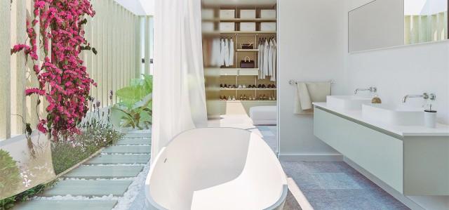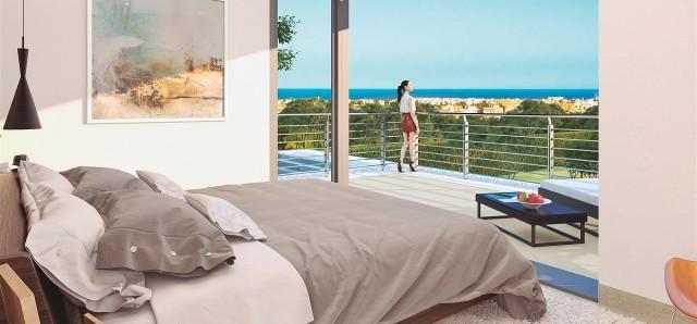 New villa development in contemporary style for sale in Estepona. LAST modern villa designed by using the latest technologies to provide contemporary living. Made up of an open plan living space, large floor-to-ceiling sliding doors, a panoramic terrace with sea views, 2 main bedrooms, walk-in closets in each bedroom, a bathroom with open-air shower, 3 meter high ceilings, and indigenous gardens. We will give you the opportunity to further personalise your living environment by giving you the choice of materials, finishing, kitchen styles and/or to create an additional 4th bedroom, all free of charge. The Villas have been specially designed to facilitate contemporary living. The open-plan living space invites the bright natural light in, creating an atmosphere of optimism and positivity. A double height ceiling with a beautiful staircase over an indoor garden welcomes you to your new home. The three-bedroom villas feature one master suite on the ground floor with stunning open-air shower, a walk-in closet and private garden, as well as two suites with walk-in closets and panoramic terraces on the first floor. he spacious back porch with three metre high ceilings and the floor-to-ceiling sliding doors create the sensation of being enveloped in the outside landscape and enable you to enjoy this natural environment to the full. Whether physically merging the line between indoor and outdoor spaces or simply having an indoor garden or an open-air private shower, life at The Villas sets a new standard of living. The site of The Villas has been skilfully used to ensure unique views from each of the villas.The stunning view of the Mediterreanean is the perfect backdrop for this exclusive development. The panoramic terrace is a great place to come back to relax and enjoy in a peaceful setting.