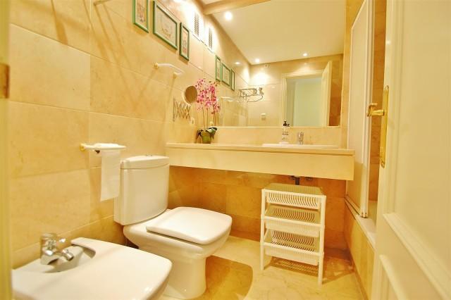 Apartment for sale in Puerto Banus. In perfect condition, with excellent location and with a great rental potential. Only 2 minutes walk to the beach and surrounded by 5 golf courses, this apartment is within a gated community with concierge, 24 hour security with cameras. It has a communal swimming pool, paddle tennis court, gymnasium and large terraces with solarium in communal areas with nice views to the sea and the mountains. With all the services right at your door step, next to El Corte Ingles, Marina Banus shopping center and with all the best shops in Marbella located in Puerto Banus. The apartament has marble floors, one double bedroom en-suite with exit to the terrace, another double bedroom, fitted wardrobes, living room with direct access to the terrace, guest bathroom, fully fitted kitchen, air conditioning hot and cold and a confortable entrance hall with wardrobe.