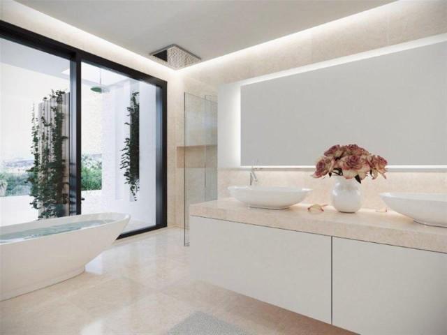 These brand new villas for sale on the Golden Mile, comprising 5/6 bedrooms, all with bathroom en-suite, a large and elegant living room with large windows that give natural light. The fitted kitchens with appliances of last generation, It emphasizes a spacious and spectacular wood dressing room. Each of these villas has a swimming pool in the garden. Also, you will enjoy a spectacular pool in the solarium taking pleasure in fastantic views provided by the surroundings. These villas are offering a new concept of housing in Marbella, a show of avant-garde, balance and functionality, with an unbeatable location and all facilities available.