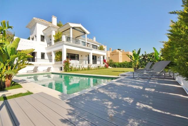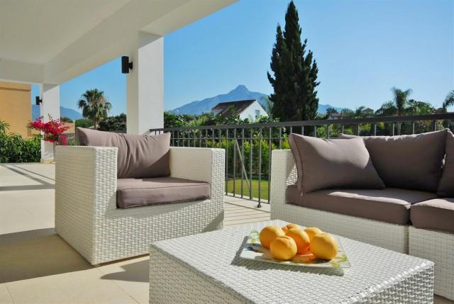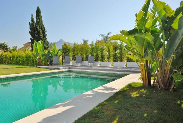 Luxurious southeast facing villa in Nueva Andalucia. This beautiful 6 bedroom villa is located very close to Centro Plaza and other amenities. The main features include a private garden with swimming pool, air conditioning hot/ cold, marble floors, under floor heating, fully fitted kitchen, laundry room, sauna, barbecue, double glazing, alarm system, parking upto 3 cars and it has lovely mountain views.
