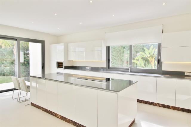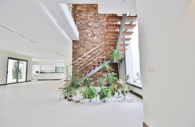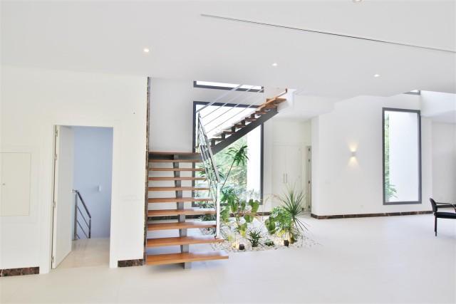 Contemporary Beachside Villa for sale close to Puerto Banus, Marbella. An incredibly spacious living room with its wonderful natural light giving it the perfect atmosphere for your daily life. This exclusive villa includes a fully fitted designer kitchen. Overlooking the spacious elegant living room, the kitchen includes top quality appliances and a new modern wine cooler. With its stylish modern electronic extractor this kitchen will make anyone feel like a professional Master Chef. A beautiful staircase delivering you to the sleeping area overlooks an elegant indoor garden with palm trees and tropical plants. The sleeping area is accessible through a spacious corridor with large windows which will take advantage of Marbella's outstanding natural light, all year long.In winter time you can take advantage of the beautiful designer made chimney giving a cosy and elegant touch to your ambience.2 minutes walk from the closest beach you will find, one of the most luxurious properties currently present on the market. Situated in one of the most coveted neighbourhoods of Marbella, Casasola is the perfect escape for the home of your dreams.