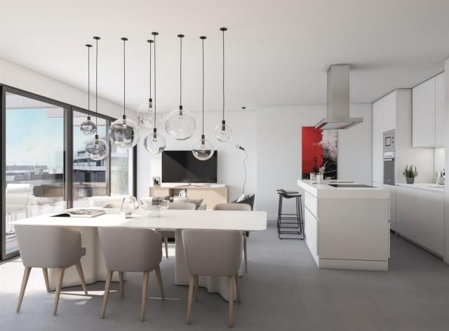 Apartment Development for sale New Golden Mile Estepona. 215 exclusive homes specially designed for enjoying the Mediterranean lifestyle. The south-facing position, the generous area of glass and the spacious terraces ensure an optimum use of sunlight. Inside, the meticulous layout is focused on enhancing social life and preserving the privacy of the most intimate rooms of the house. The open-plan area containing the kitchen, living room and dining room extends outwards in the form of a continuous terrace. With an area