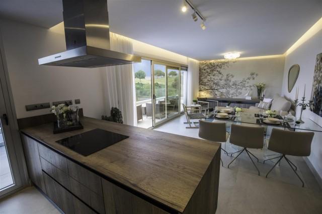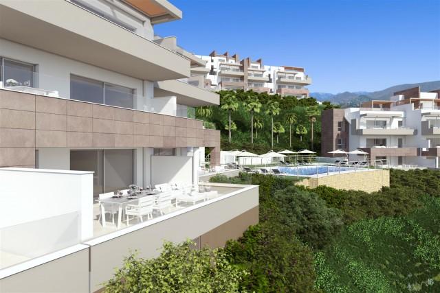 New contemporary residential apartments for sale in the valley of Mijas, situated next to the prestigious golf courses and opposite the Club House. The new complex has panoramic views of the golf course and the mountains of Mijas. 20 penthouses with 3 bedrooms and spectacular solariums and 40 sunny apartments with 2 and 3 bedrooms private gated complex with communal gardens and swimming pool. The complex and the golf course are perfectly integrated within a natural landscape and with spectacular surroundings. The build quality stands out as do the new luxury materials and finishes. Surrounded by nature, the first phase is now on sale with 12 penthouses and duplex with private solarium and 24 apartments with 2 and 3 bedrooms. Private residential complex with communal gardens and pools. High quality finishes complying with European standards for construction. All the apartments have spectacular views of the golf course, coast and mountains. Large sunny terraces. Private underground parking and storage room included in the price. Solar panels, thermal and acoustic insulation, natural ventilation system. Special privileges on all facilities and services of the Golf complex and Energy certificate type B. The expected handover date for the phase 1 is November 2019