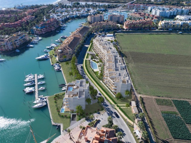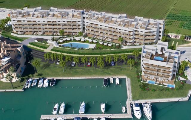 Exclusive new penthouses and apartments in San Roque Marina Cadiz. The development comprises two buildings, with 8 and 56 apartments respectively and marvellous views of the Marina. Situated in a private gated community with pools and garden areas. The building 2 offers 2 and 3 bedroom apartments and also the possibility to transform two apartments into a spacious 4 or 5 bedroom home with large reception rooms. The nautical style residential complex blends into the wonderful scenery of la Marina, next to the yacht club. Enjoy your new home in a unique setting in one of the most prestigious residential areas in southern Spain. Built to the most exacting quality standards, with each home having the best in thermal and acoustic insulation. The building holds a grade B Energy certificate. Penthouses with private solarium and apartments with terraces, all with spectacular views of the Marina. Private residential development with a shared pool and garden. Option available to join two units and create a spacious 4 or 5 bedroom home to enjoy. High quality designer finishings complying with European construction standards. Solar energy, thermal and acoustic insulation and a natural ventilation system mean that the building has been awarded a grade B Energy Certificate. East and Southeast facing front terraces. Private garage and storeroom included in the price. Work starts during the first trimester of 2019. Approximate delivery date: third trimester of 2020.