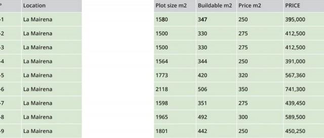 Fantastic investment plot of 15,399 m², with 3,547 m² of buildable area for 9 villas in La Mairena.