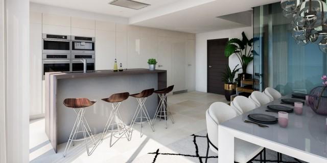 The fully diaphanous ground floor enjoys large windows from the floor to the ceiling allowing natural light to enter, the villas have been designed with the wonderful Mediterranean climate in mind, with a large outdoor terrace, bright living rooms with generous windows and glass railings so that views are not interrupted, fully equipped functional open kitchens, spacious rooms with large terraces on the first floor and a 63 m2 solarium to enjoy breathtaking panoramic views.
