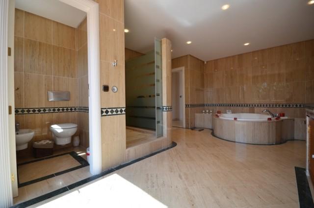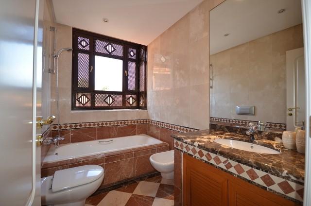 The Master Suite is exactly that, and on entry it also has a small vestibule with a door leading to the bedroom which has fitted wardrobes and has a large airy feel with views towards the sea. Sliding patio doors lead onto the large wrap around terrace, which has beautiful views of the sea and tropical trees. The Master bathroom is accessed via a separate door within the suite which houses a circular bathtub made by Bañacril. There are 8 jets strategically placed to ensure a complete relaxing bath. The sink unit is long with storage under and houses twin sinks. A large step-up and in 'Wet Room' style shower and a door leading to a separate toilet.