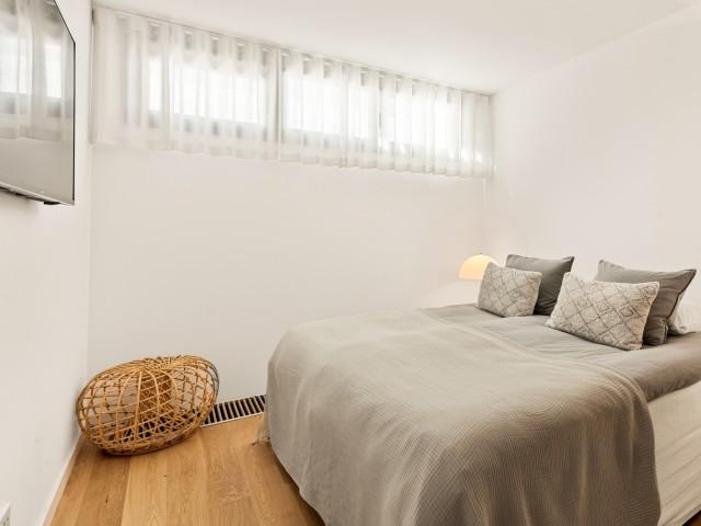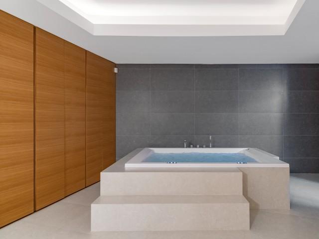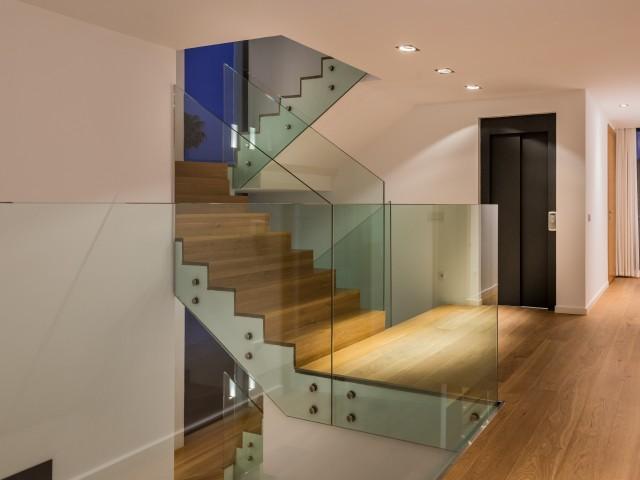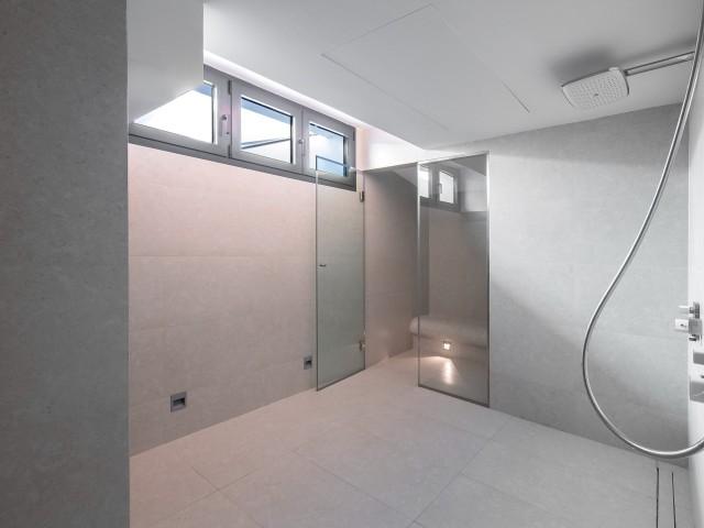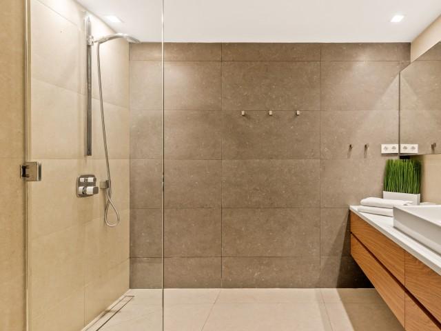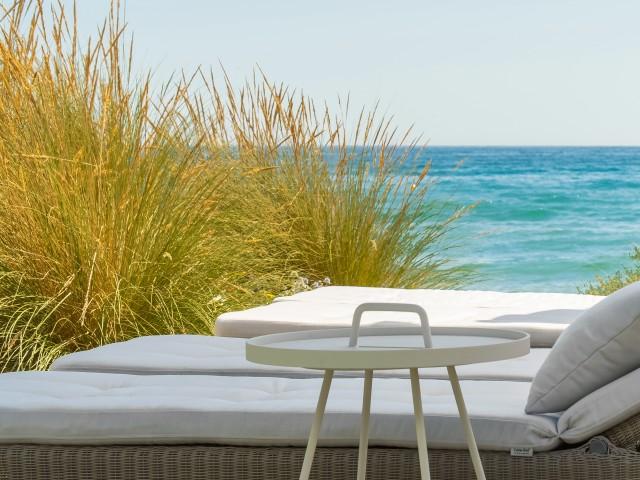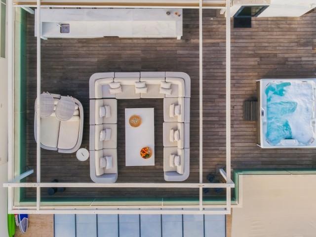 The beautifully landscaped private dune is offering complete privacy to the relaxing and dining areas on the terrace. On the entrance level there is also a guest bedroom with fitted and walk-in wardrobe, and a bathroom with shower, toilet, and basin. First floor: Upstairs, on the first floor, there is the master bedroom, with two sets of wardrobes, and master bathroom with shower, wide double basin, toilet, and access to the terrace. There are further two bedrooms and one shared bathroom with shower, toilet and basin. Each of these bedrooms has direct access to the terrace facing the sea and offering amazing views to the beach. Solarium: On the rooftop, there is a fabulous open terrace with fitness equipment, a pergola, and a Jacuzzi, and, of course, great 360 degree views. Basement floor: On the lower floor level, there are two further double bedrooms with natural light, fitted wardrobes, a bathroom with basin, shower and toilet. The lower level also features a SPA with Jacuzzi bath, steam bath, sauna and showers; storage rooms and utility room. Each floor is served by the elevator and oak staircase with glass railings.