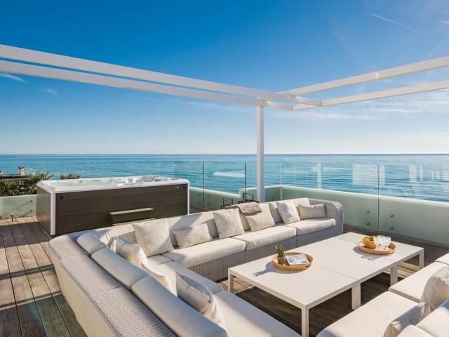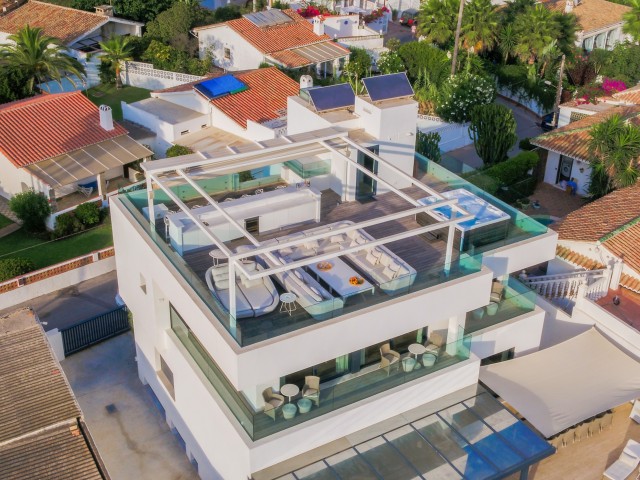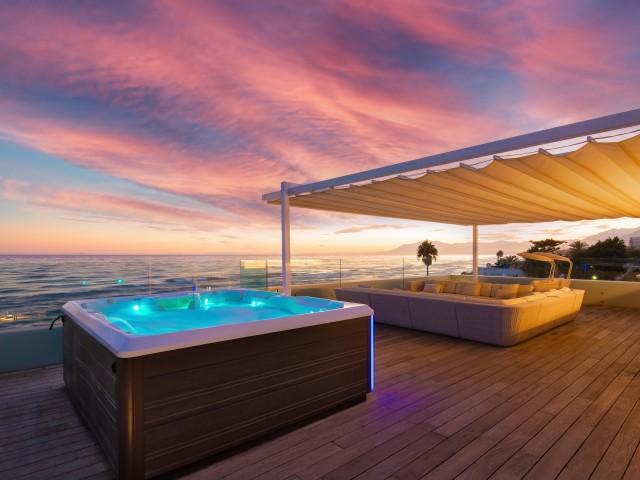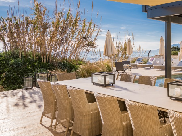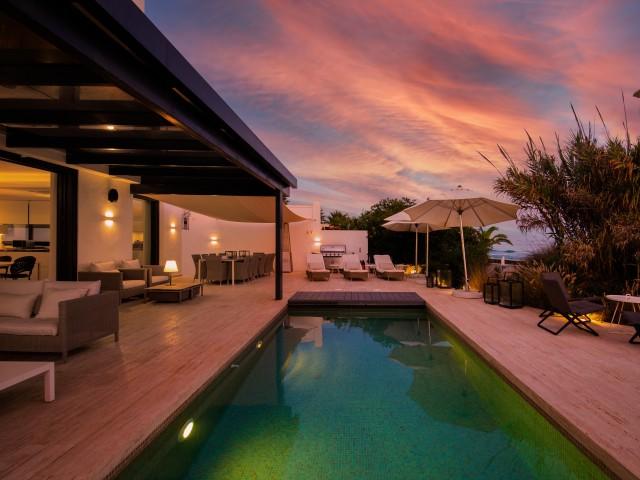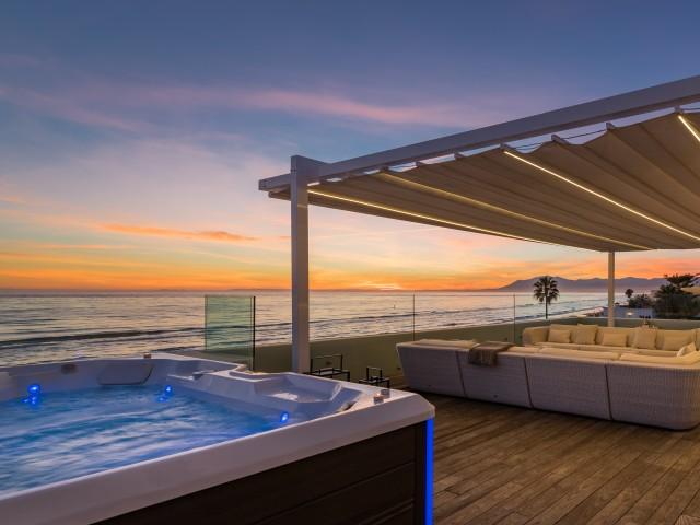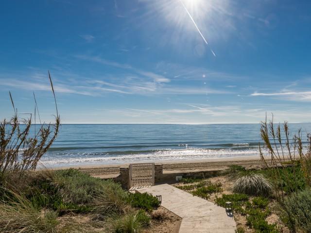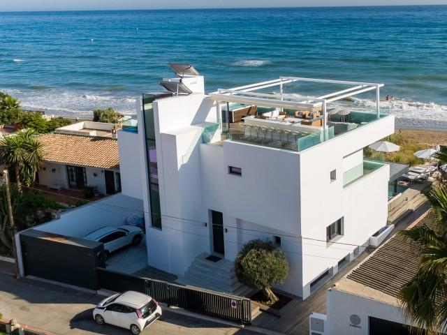 This spectacular front line property is set right on the Costa Bella beach surrounded by golden sand and natural dunes. The location, east side of Marbella, is close to all the facilities and just a short distance from Marbella centre and airport of Malaga. The property is newly-built to the highest standards, designed by top Marbella architect Jose Carlos Moya, standing out with its modern sophistication and simple elegance. Facing to the south west, the property enjoys superb sea views and magnificent sunsets.