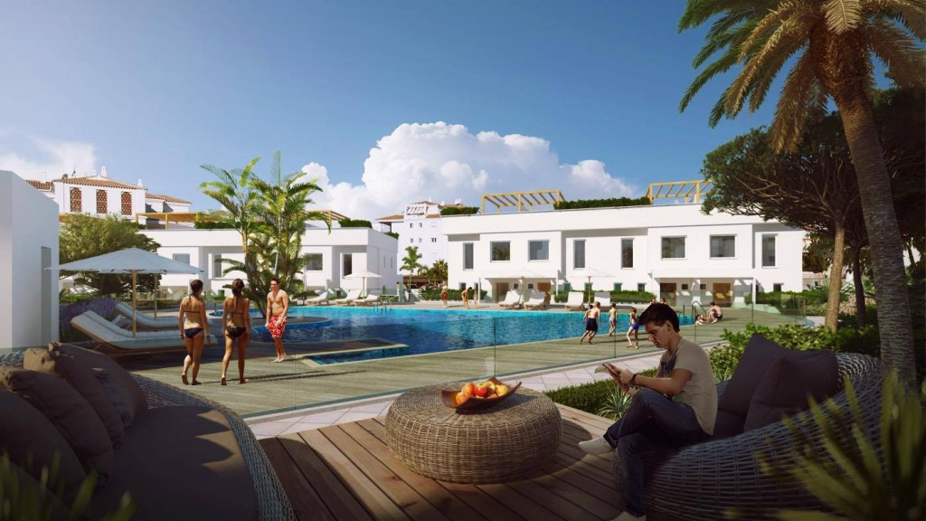Small complex of only 48 hourses. Sea views located close to the beach and other essential amenities. This is a first class modern development in the heart of the Costa del Sol. With easy access to the highway, 10 minutes from Marbella and 30 minutes from Málaga Airport.The gated community has 24 hours security, an ample garden area with swimming pool to enjoy the 300 + days of sun, plus an underground gym next to the pool for use by the residents. Built using high quality materials, including reinforced doors, installation of telecommunication, TV and telephone in living room and bedrooms, first quality sanitary ware, taps and sanitary equipment, H / C air conditioning, floor heating in bathrooms and fully fitted kitchen with top brand appliances.Each townhouse comes with 2 private parking spaces underground.