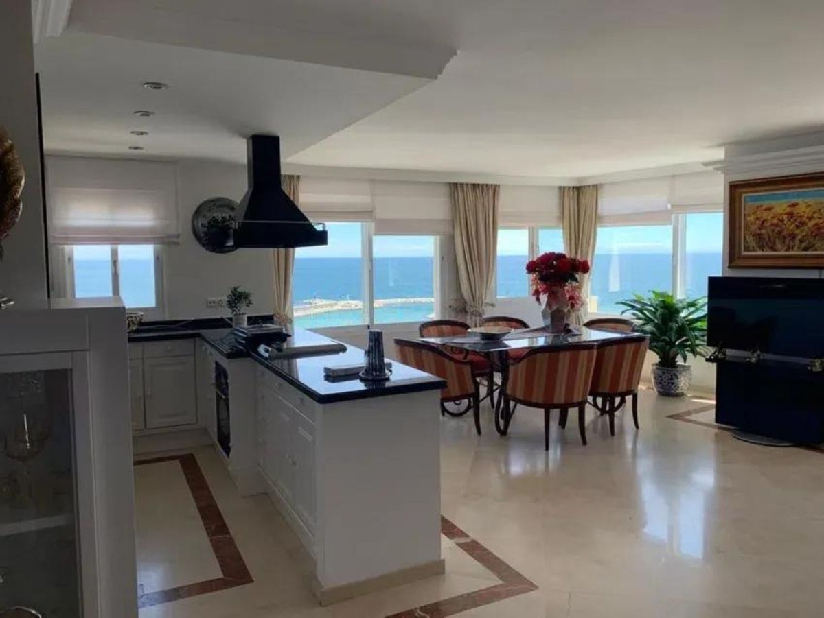 Impressive duplex penthouse of 160 m2 in front of the beach with magnificent views of the sea and the port of Estepona. It is located in a secure and well-maintained urbanization with beautiful gardens, parks, two swimming pools and parking. The urbanization has maximum security with a guard that controls who accesses it. There is air conditioning, heating and elevator. The price is worth it. You will not find an equal apartment in the whole building.