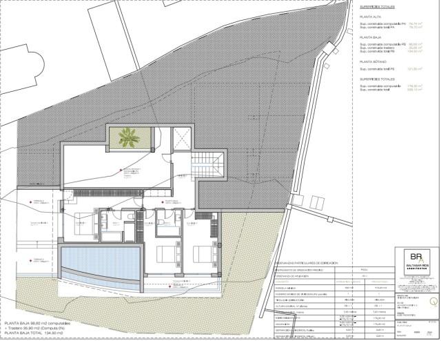 ENTRANCE FLOOR: Upon entering we find the spacious living room, open kitchen to the dining room with bright open spaces that lead to a large covered and uncovered terrace next to the pool. On this floor, there is also a toilet, entrance wardrobe and outside 2 car garages.