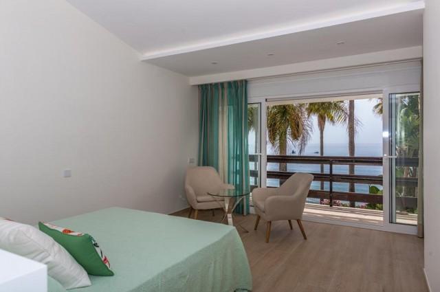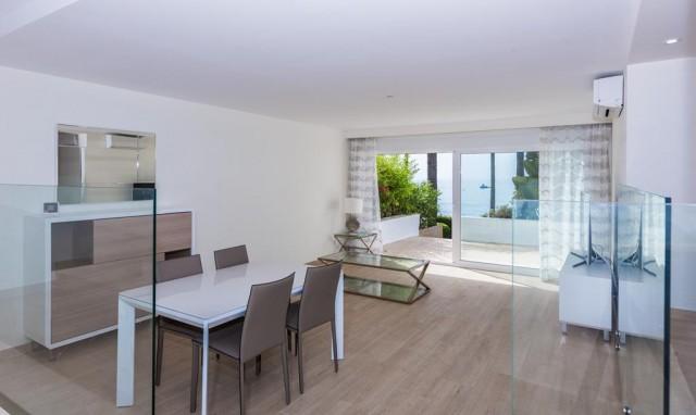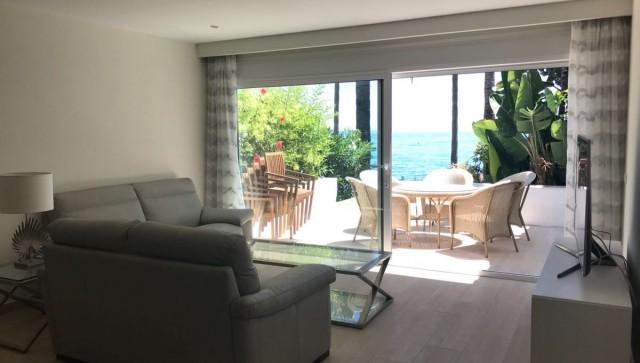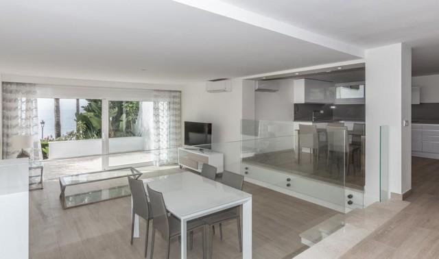 Fantastic beach chalet in Marbella city centre, near hotel El Fuerte right at the promenade, this outstanding chalet offers unique beach views and a beautiful garden with brand new luxurious spacious interior of 240m2, 4 bedrooms including a fabulous master bedroom with terrace overlooking the sea side, 4 bathrooms (plus extra toilet), 2 living rooms, 2 private parking spaces and solar heating system.