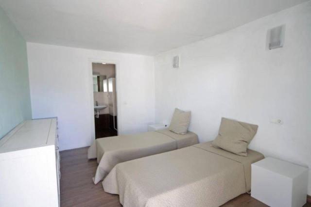 Just a stone throw away of Elviria´s beautiful wide beaches,with restaurants and the famous Don Carlos /Nikki Beachclub, this lovely, independent villa enjoys a fabulous location and becomes an ideal holiday retreat. The property boasts an ample family accommodation with living room and Danish fireplace , modern fully equipped kitchen while retaining the beauty and tranquillity of a private residence. A light flooded dining area in the courtyard with wooden beamed ceiling creates a cozy atmosphere and leads into a beautiful private garden. It has been totally refurbished using quality materials and mediterranean features . The property is built on one level and consists of a sunny, covered terrace , southfacing, with private pool/jacuzzi and a roof terrace with beautiful sea views. Parking space for one car. In the main house they are 2 bedrooms with 2 bathrooms with shower and built in wardrobes. Further there is a sep. Apt with bedroom and bath. Reduced in price and available for short/ long term rentals during th summer!