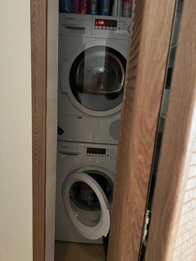 - The bathroom, stylish and functional, is equipped with a sink, toilet, shower tray and storage.