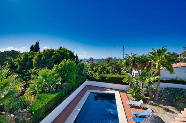 This south facing villa has sea views from upstairs and is composed of 3 bedrooms en suite and is situated on a flat plot with a lovely pool and set in matura gardens with sub tropical plans and trees. The open plan kitchen is beautifully done and gives access to the spacious living room. The villa offers a carport with space for 2 cars inside the grounds. The house has been completely renovated to a high standard recently.