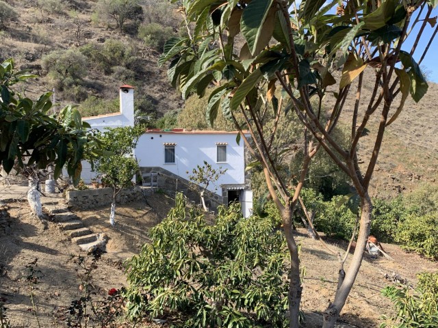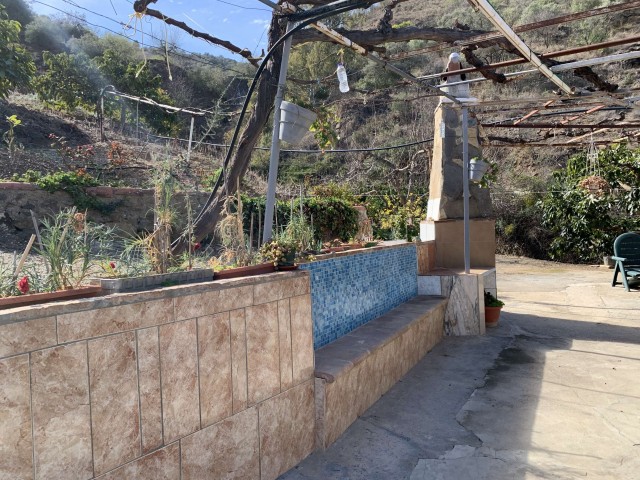 Set below the road leading from El Borge to Cutar and walking distance to Cutar village. The property enjoys its own underground natural water source as well as having a 70,000 litre water deposito and irrigation for the trees. There is a swimming pool, vine covered terrace, covered terrace, purpose built barbeque. The house comprises kitchen breakfast room with fireplace, shower room, bedroom 1, living room, bedroom 2. The entrace from the road down to the property is shared with the neighbour and there is a natural boundary with a stream.