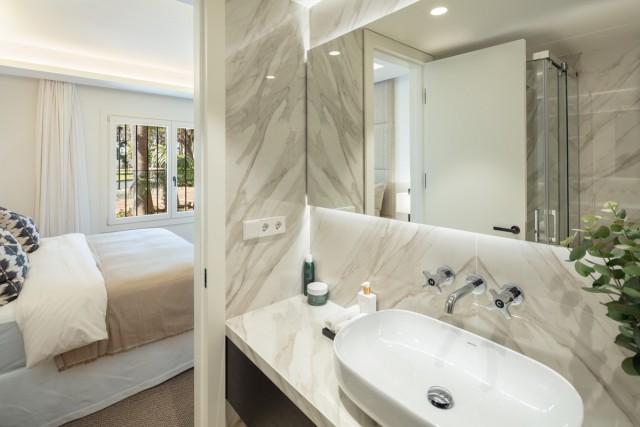 Exquisitely crafted, this luxury apartment emphasises bespoke interiors combined with the highest quality standards. Effortless indoor-outdoor living with an expansive terrace overlooking the magical Japanese garden and only steps away from the golden beaches of Marbella. Offering an open plan layout, a modern kitchen custom designed with oak cabinetry and integrated Gaggenau appliances. Complete with 3 sizeable bedrooms, each one exhibiting a refined contemporary design complete with its private ensuite bathroom.