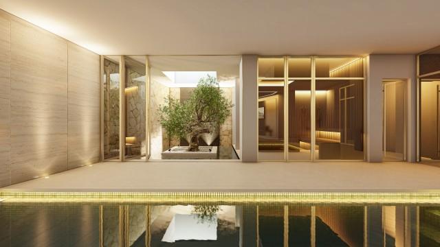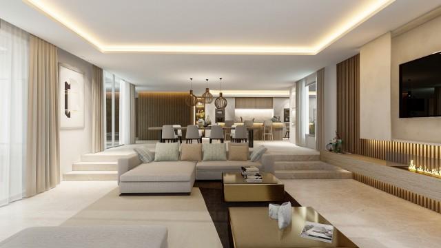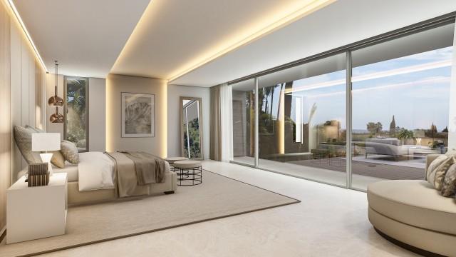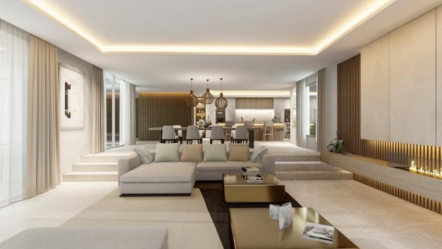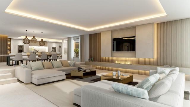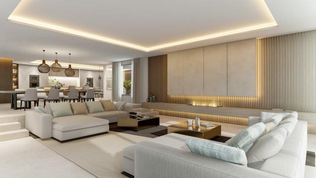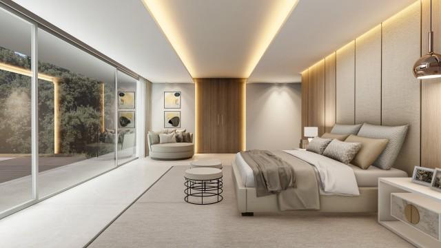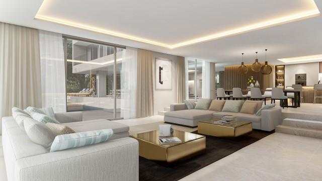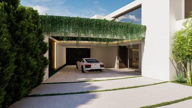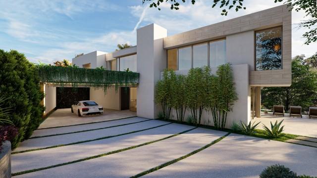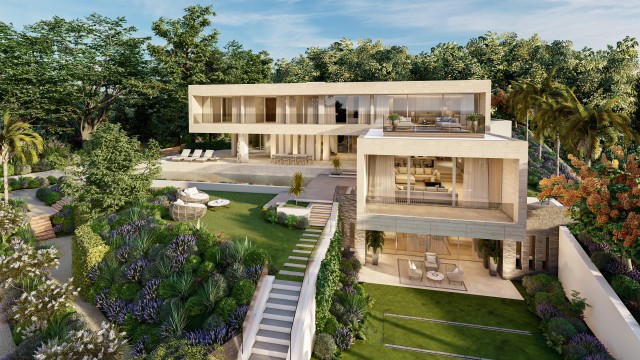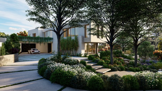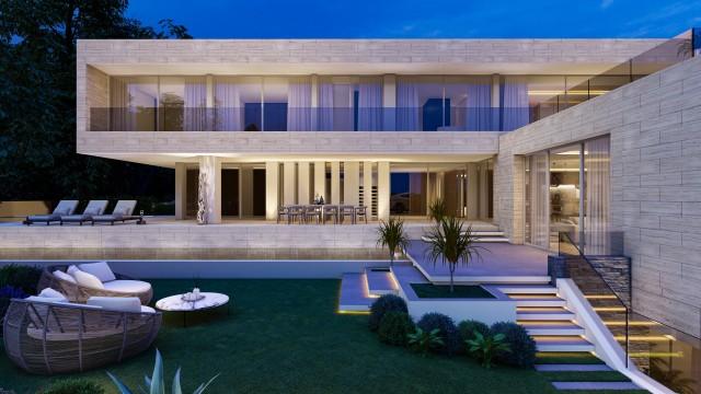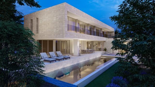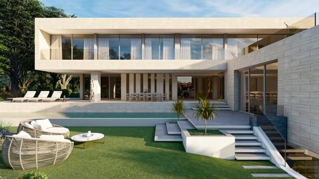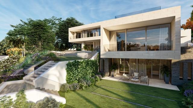 New Modern Villa Project for sale in a Luxury Urbanisation in Marbella. This is the most attractive villa project in the most prestigious gated community in Marbella Golden Mile. This stunning mansion boasts an outstanding design surrounded by landscaped gardens with imposing oak trees and charming vegetation. In harmony with its natural surroundings, this property offers beautiful sea views, complete privacy and nature.