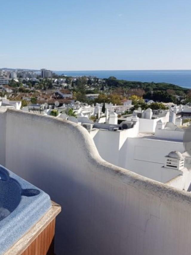 Located in the heart of the Marbella Golden Mile, this development has fantastic tropical gardens, children''s playground, five community pools, gymnasium, sauna and paddle courts. Unbeatable location, just a few minutes walk to some of the best beaches, restaurants, shops and all amenities. The penthouse has an integrated kitchen, high ceilings and has been reformed with exceptional qualities and an amazing roof terrace with sea views. Large private parking space and storage.
