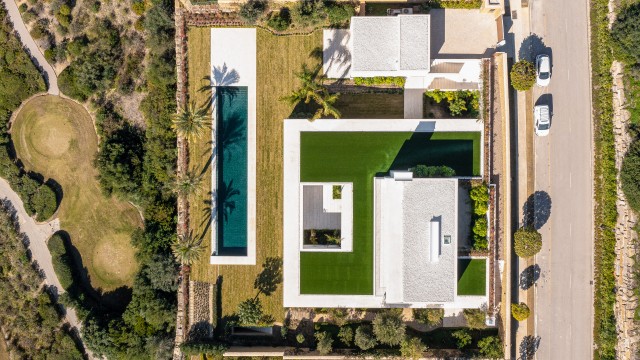 Built on individual plots from 1,800 to 3,500 m2 and an inner surface from 500 to 1,000 m2, these villas are located in a privileged location on the first line of the golf course with stunning views of the Mediterranean.