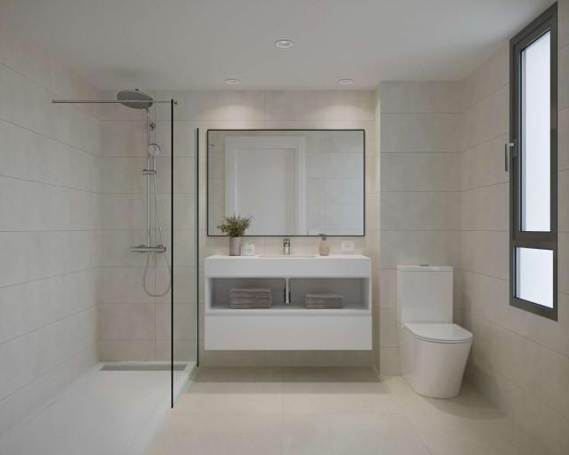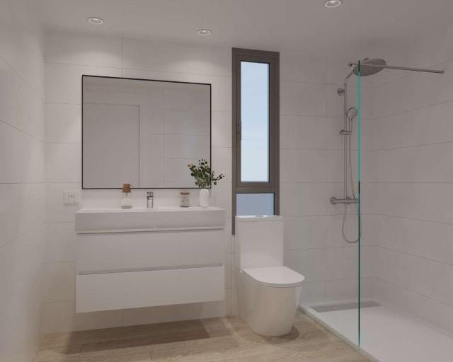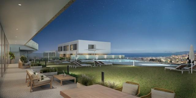 The apartments are very elegantly designed and maximise the natural light from the glass terraces. The high build quality includes porcelain flooring, slip resistant porcelain floors on the terraces, double glazing windows throughout, air conditioning hot and cold, underfloor heating, electric blinds and a fully fitted open plan kitchen. These apartments are in a prime location within a few minutes walk of the beach as well as close to some of the best golf courses on the Costa del Sol. These amazing apartments are located in a tropical, gated community with 24hr security offering 2 outdoor swimmingpools,a children's pool, a gym and a social club
