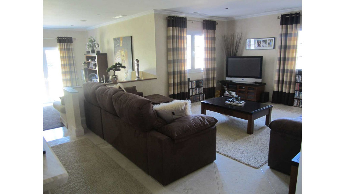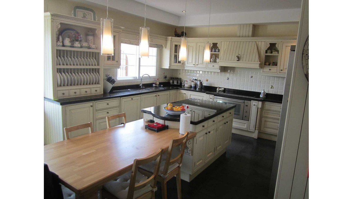 The formal living room also has a "hidden door" which leads to 2 downstairs guest bedrooms and a shared bathroom. The kitchen features a rustic style with granite worktops, American-style fridge/freezer, newly fitted appliances and an island countertop with adjoining kitchen table. Off the kitchen is a formal dining room which leads to the large enclosed terrace/conservatory. In addition, further down the hall is the separate smaller family room which makes for a more cosy environment but still offers multiple seating areas. This villa has a lot to offer and is perfect for families and hosting guests.