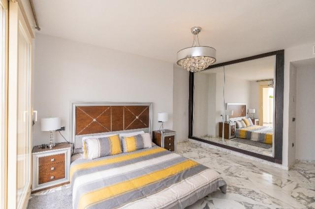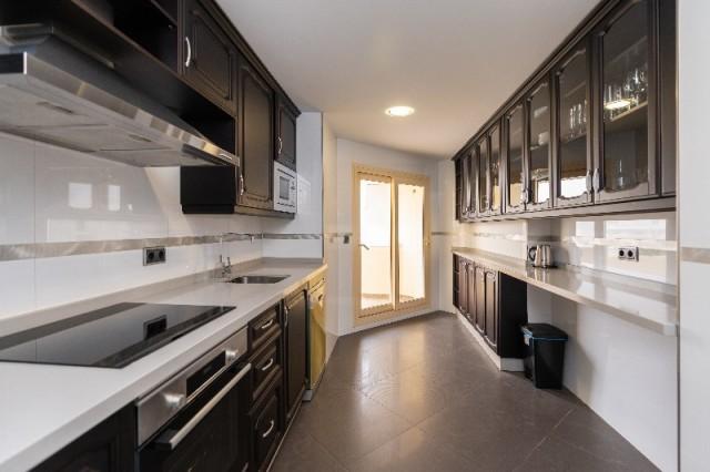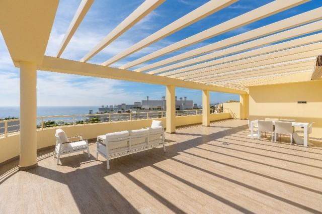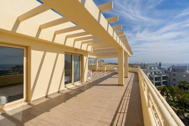 This bright, unusually large 3 bedroom luxury, south facing corner penthouse is situated within the exclusive, beautifully kept, luxury complex of Myrmar del Sol in Mijas Costa near to the prestigious Chapparal golf club.The property consists of a lounge/diner, a fully fitted kitchen, 3 large double bedrooms, 2 bathrooms (1 ensuite) and a spectacular 150 m2 wrap around terrace which boasts lovely views of golf, mountains, sea, community gardens and pool. The lounge boasts high ceilings with beautiful floor to ceiling glass patio doors on 2 sides bringing in lots of natural light, the bedrooms all have large fitted wardrobes as well as patio doors in the master bedroom which leads onto the terrace. This apartment is finished to a very high standard, with marble flooring throughout, fully tiled marble bathrooms, air con (H&C), video entry phone, superfast fibre broadband, alarm etc.This peaceful complex has beautiful, very well maintained tropical gardens which includes a water / pond feature. It also has a large pool with a separate children''s pool. The apartment comes with 1 underground parking spaces and 1 storage room.