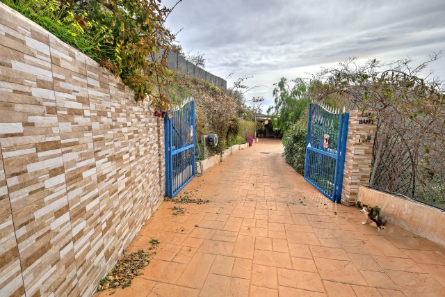 This is an impressive estate located in Arenas, with a land area of 5800m2. The property consists of a rustic-style house that features a spacious living/dining room with sloping ceilings, giving it a cozy and elegant touch. The house has three fully equipped kitchens and three spacious bedrooms, as well as two modern bathrooms.