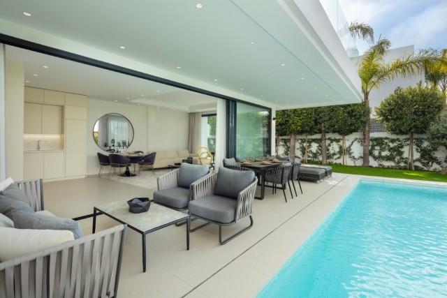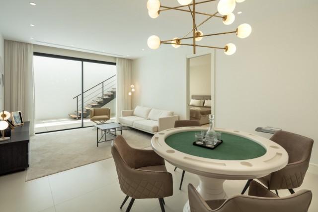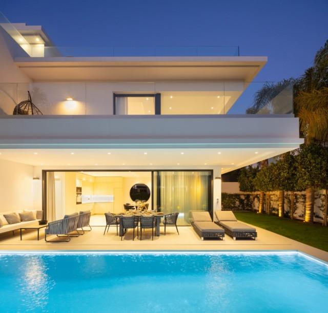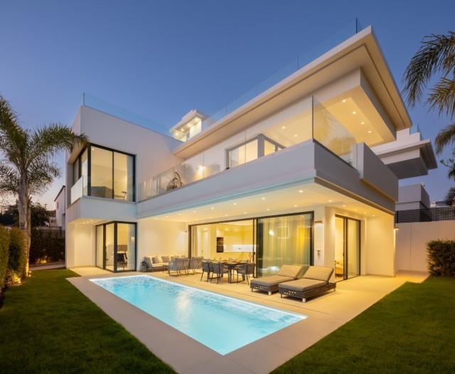 Beachside Modern Villas for sale on Marbella Golden Mile. These modern villas embody the definition of modern coastal living with sharp structures that impress and white exterior paint symbolic of traditional white houses along the coast. The remaining two contemporary villas are located in a luxurious area of the Golden Mile, on the beachside between Puerto Banus and Puente Romano.