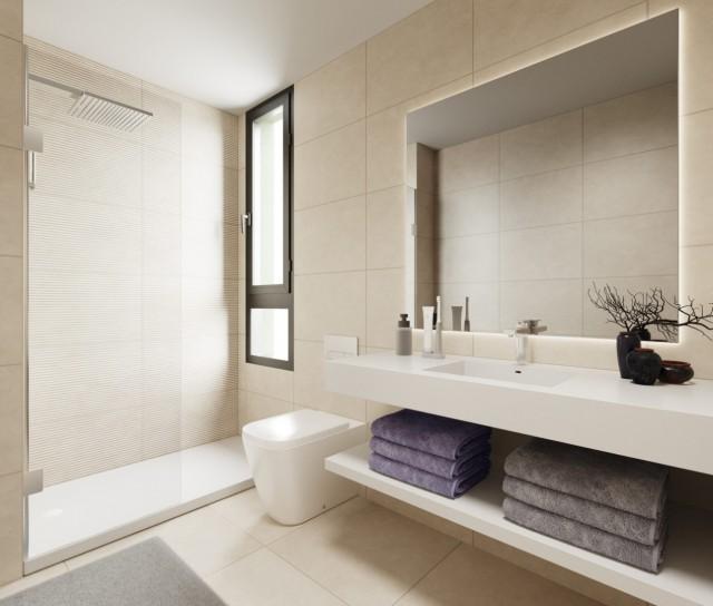 Frontline Golf Development of Modern Apartments for sale in Mijas Costa. Located only 5 minutes away from La Cala de Mijas, one of the most popular holiday locations at the moment on the Costa del Sol. Wide sandy beaches along a 6 kilometer promenade with an abundance of beachclubs and ´chiringuitos´ to enjoy yourself during the day and a picturesque old town with some exquisite restaurants and winebars to 'chill' during the warm evenings.
