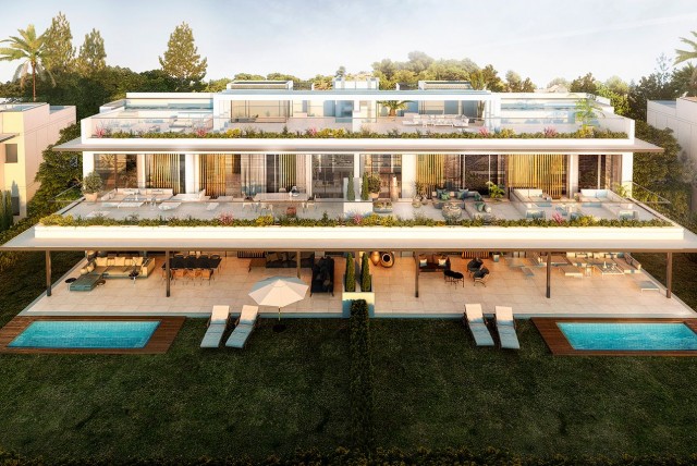 3 bed, 3.5 bath garden apartments are 140 m2 built plus 66 m2 terrace plus 123 m2 garden. From 1.100.000 euros