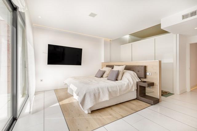 Completely renovated in 2014 with top modern design and with high quality materials, this property offers numerous extras such as a full domotic system that controls the electric blinds, the cold / hot air conditionning system, the underfloor heating and the many led lightings throughout the whole apartment; a music system with integrated speakers in the ceiling in each bedroom; Hansgrohe fittings and Porcelanosa ceramic tiles in the bathrooms; a full shower room/toilet on the living area level, as well as a storage/utility room.