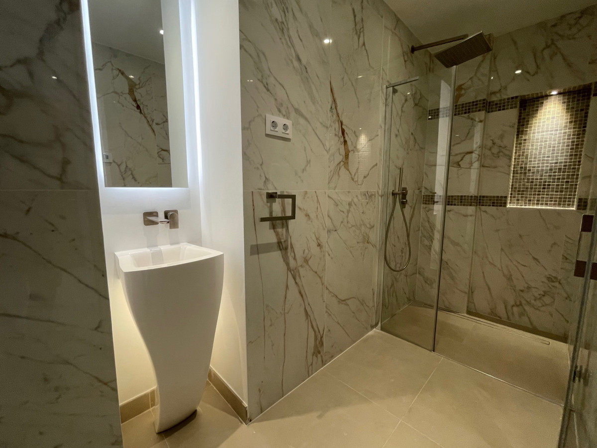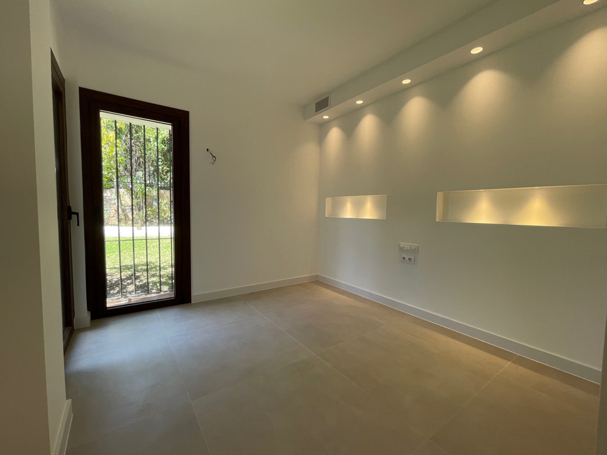 This large 3 bedroom completelly renovated ground floor apartment is located within the Las Cascadas complex in the heart of the Golf Valley, facing south west and with direct access to the beautiful communal gardens and pool.