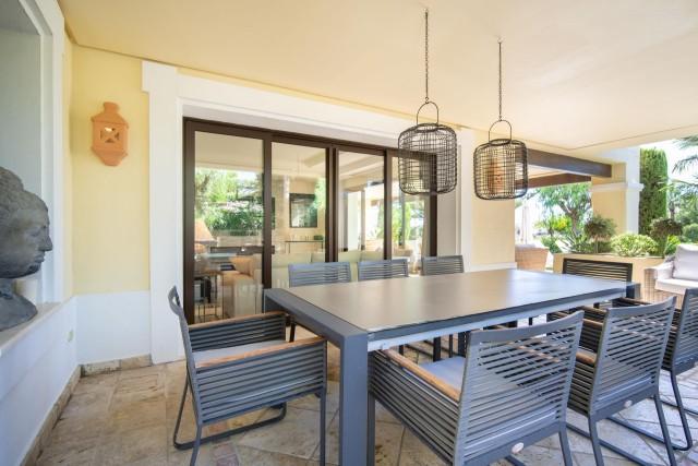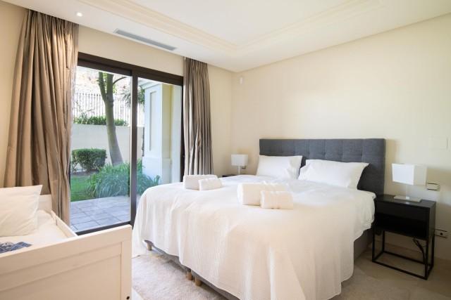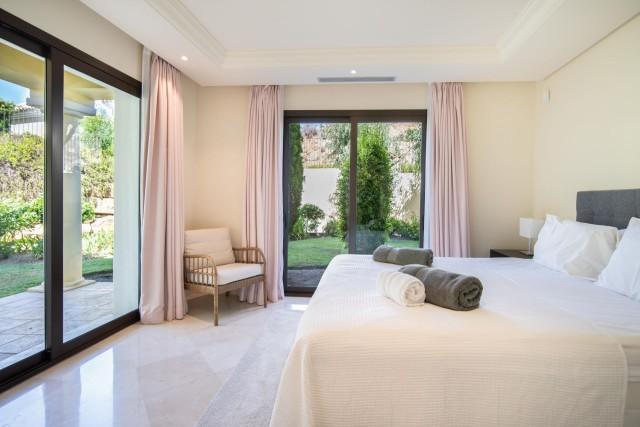 Magnificent ground floor apartment for sale within a gated community in Nueva Andalucia. This exceptional property features a stunning covered terrace that serves as an ideal spot for alfresco dining and relaxation, extending seamlessly around the property. Residents also enjoy direct access to the beautiful communal garden and pool area, offering views of the surrounding landscape.