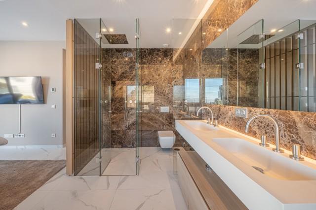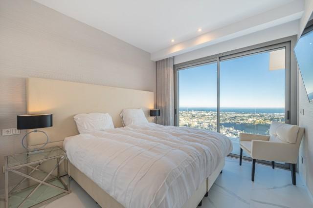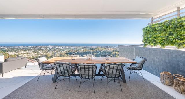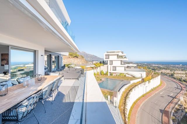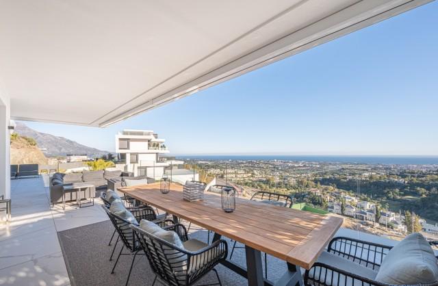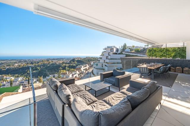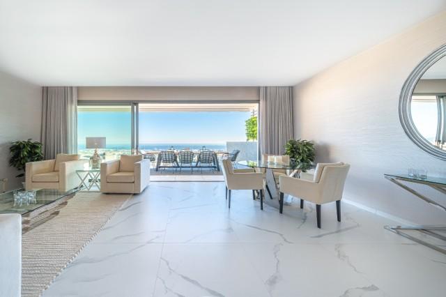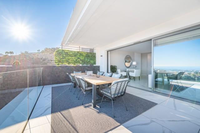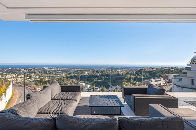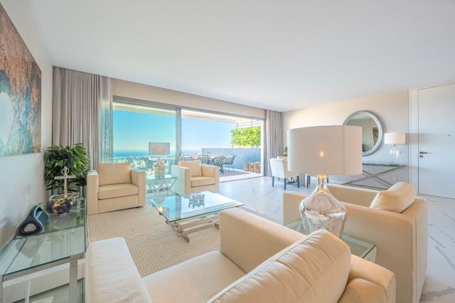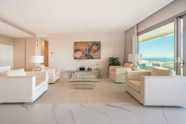 Stunning Corner Middle Floor Apartment with Panoramic Golf & Sea Views For Sale in Benahavis. This middle-floor apartment has a prestigious, luxurious and modern image, and is built according to the highest quality standards.