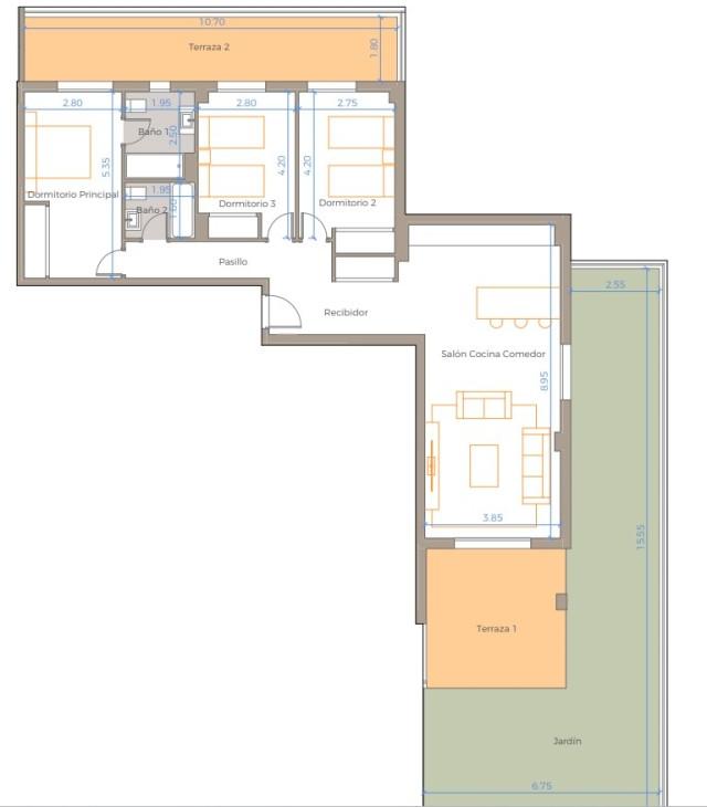 The development consists of 46, two and three bedroom homes distributed in two separate blocks. Some of these homes have spacious terraces and sea