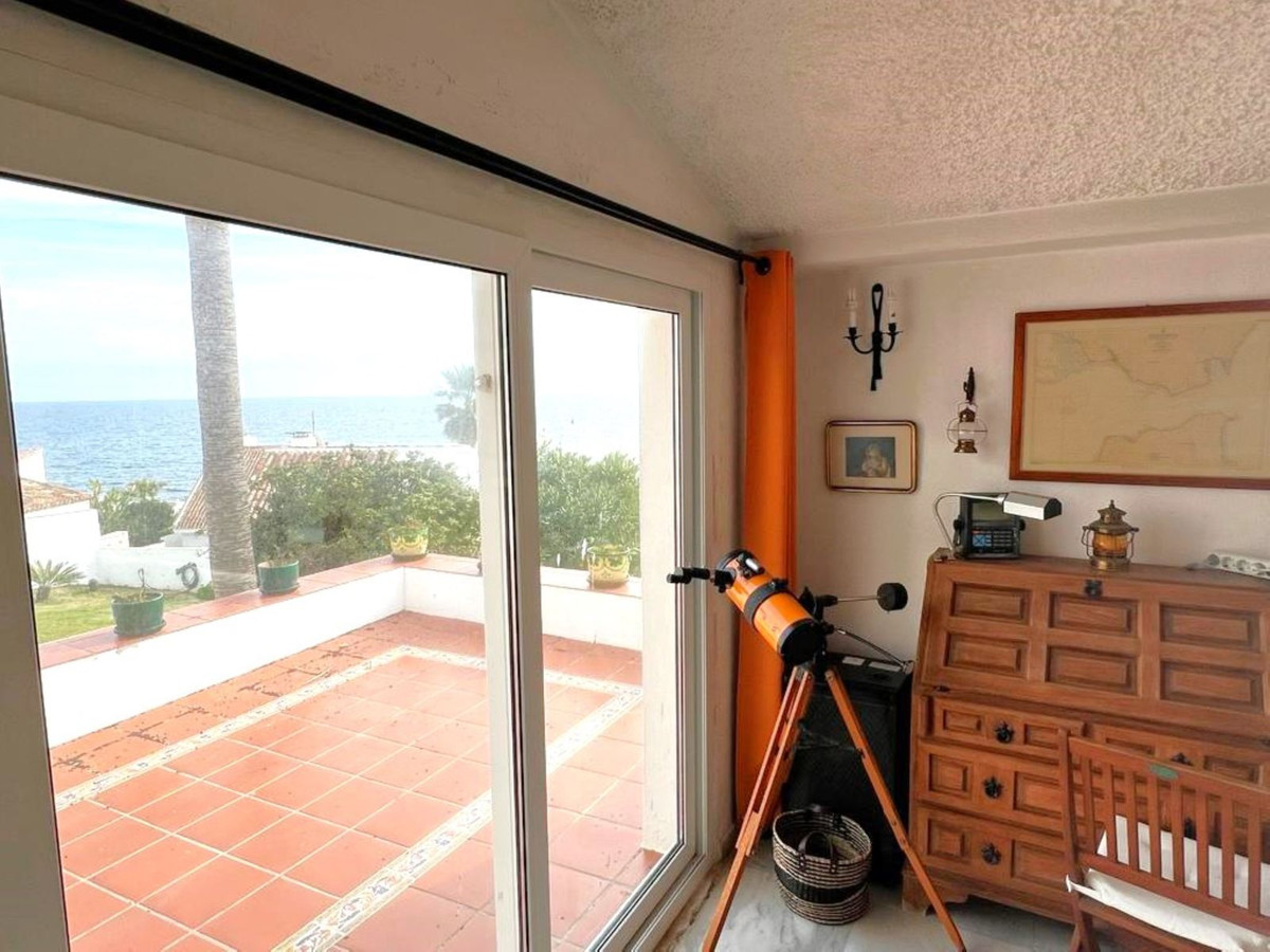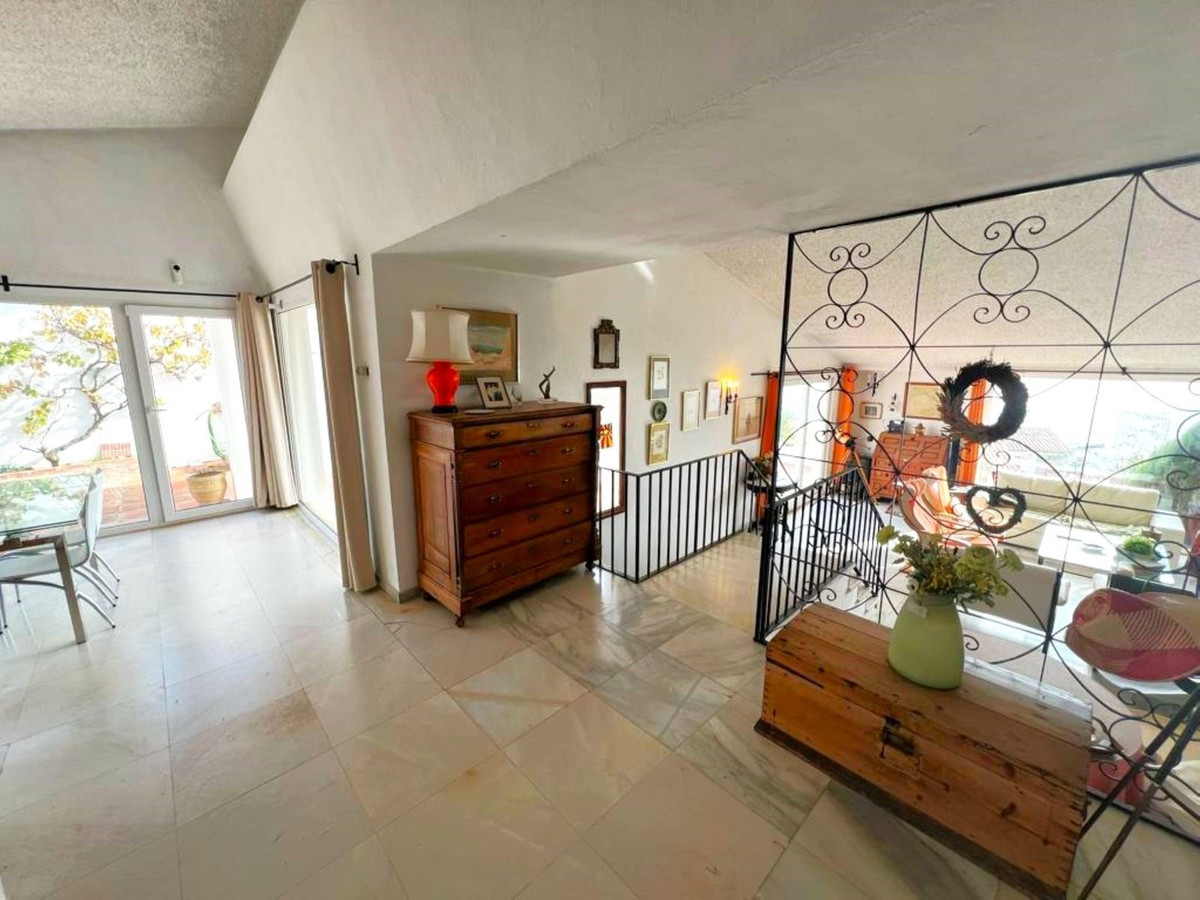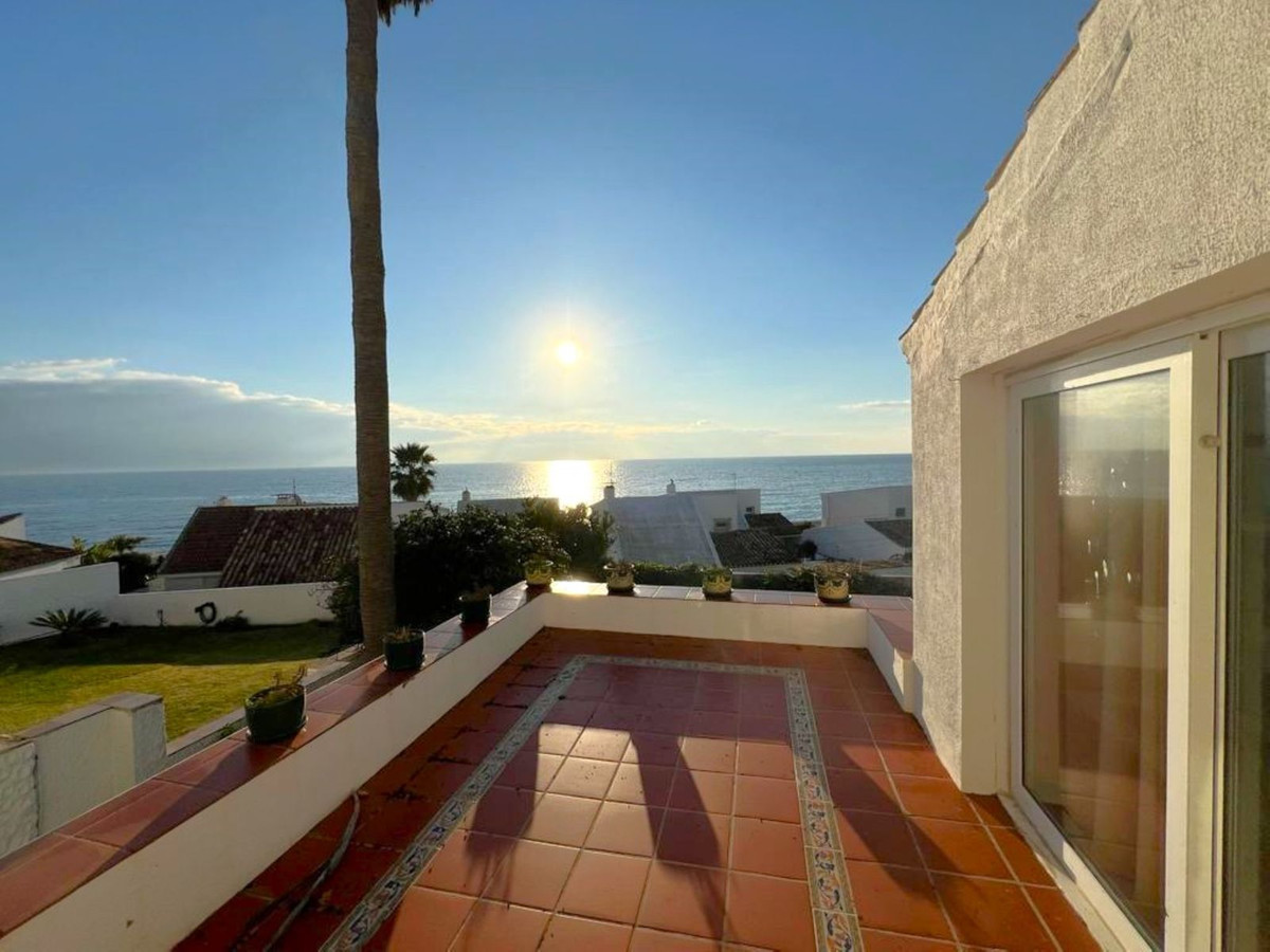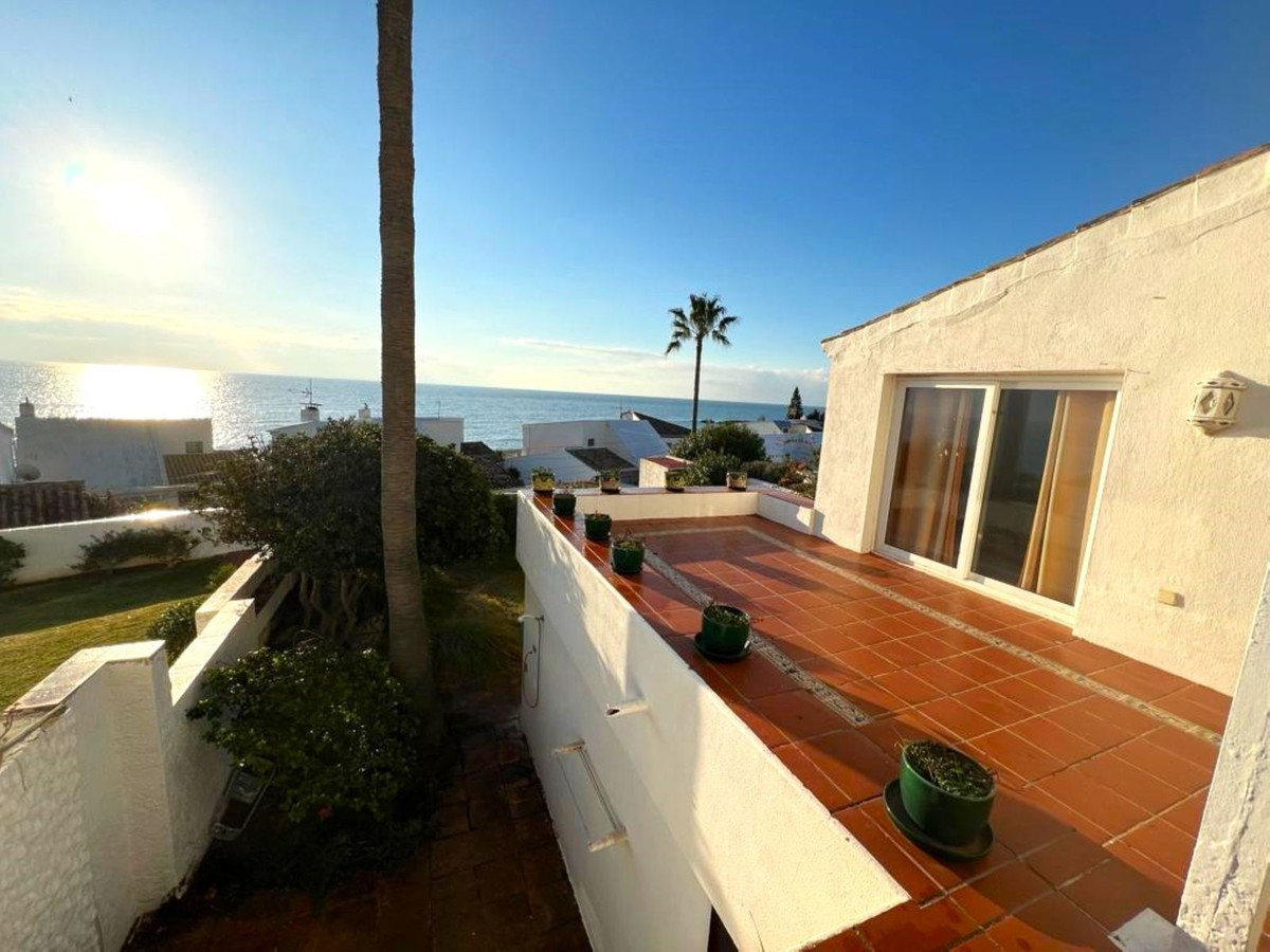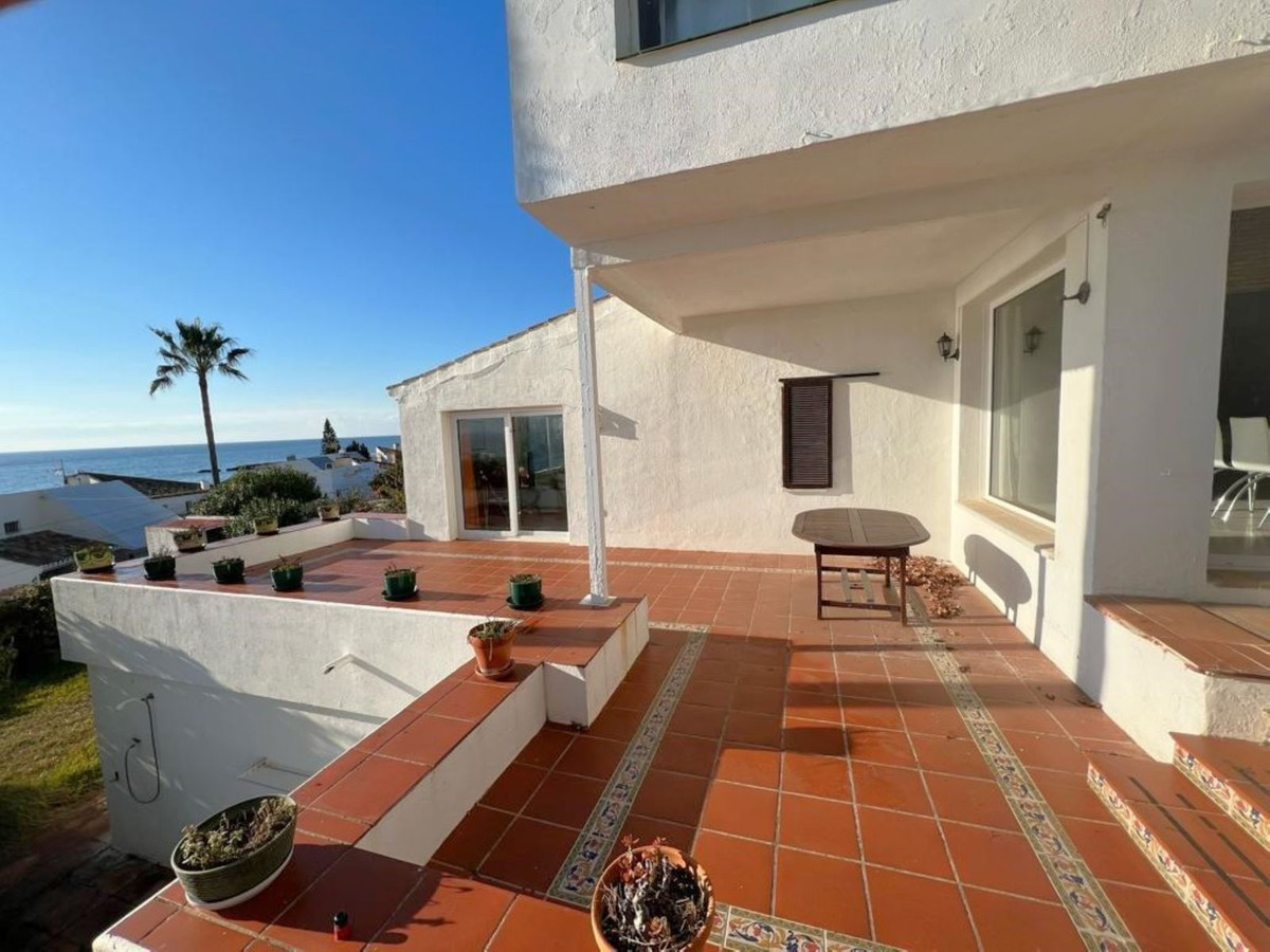MAGNIFICENT DETACHED VILLA WITH BEAUTIFUL SEA VIEWS! Located in a URBANIZATION ON THE BEACHFRONT LINE, ONLY 2 MIN FROM THE BEACH ON FOOT AND 7 MIN BY CAR FROM THE HISTORIC CENTER OF ESTEPONA. It is very well connected on foot through the beautiful coastal path and is close to supermarkets, schools and the new High Resolution Hospital of Estepona. It has a large garden area and spacious terraces with beautiful panoramic sea views, in addition, the property is surrounded by gardens and houses with the attractive design style of the famous architect Aubrey Marcus David and has SOUTHERN ORIENTATION. The house is distributed over three floors. The main entrance to the plot leads to a porch where the entrance of the house, which has a living area on two levels that enjoy great light, beautiful views of the Mediterranean and direct access to the terrace bordering the garden and a large kitchen, on the top floor and the first floor are the bedrooms and bathrooms. The house was renovated a few years ago and has been well maintained. The urbanization is very well maintained and has artificial grass tennis courts, gardens, 6 communal swimming pools, and covered parking areas within the grounds. WE HIGHLY RECOMMEND YOUR VISIT!