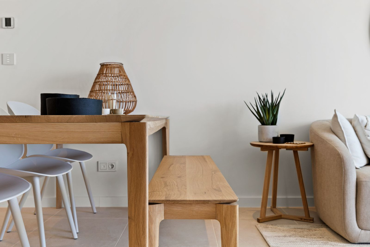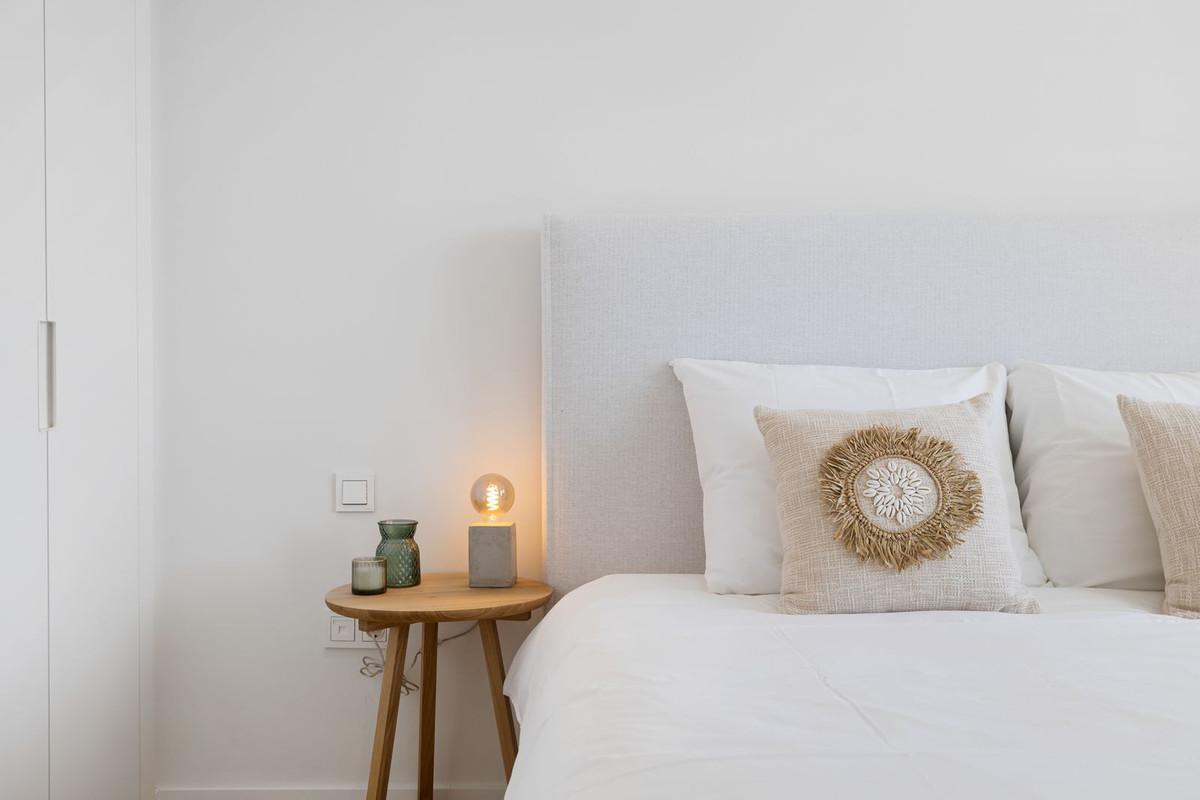 This beautiful 2 bedroom apartment near Marbella is fully move-in ready and has 2 bathrooms. The property has 73,14m2 of usable space and a terrace of more than 28m2 which is South-West facing and overlooks beautiful mountain and sea views. There is also an underground parking space and storage room. The property has quality finishes and is fully furnished with quality ibiza style furniture by Homeinspain.