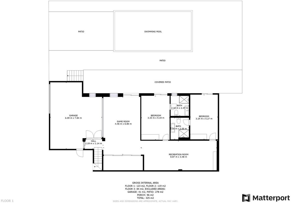 Pool Level - (Including garage) 164m2 including two bedrooms (high-quality en-suite and built-in wardrobes) cinema, games room all with access to the pool terrace.
