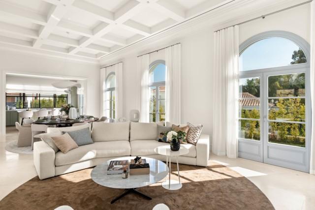 INCREDIBLE Villa with FRENCH PROVENÇAL ARCHITECTURE For sale in NUEVA ANDALUCIA Marbella. Nestled in the esteemed neighborhood of Nueva Andalucia, Marbella, this villa stands as a testament to unparalleled luxury. This exquisite property, with its classical architecture reminiscent of French provincial style, graces the heart of the Golf Valley, just moments away from Marbella’s prestigious Los Naranjos Golf course.